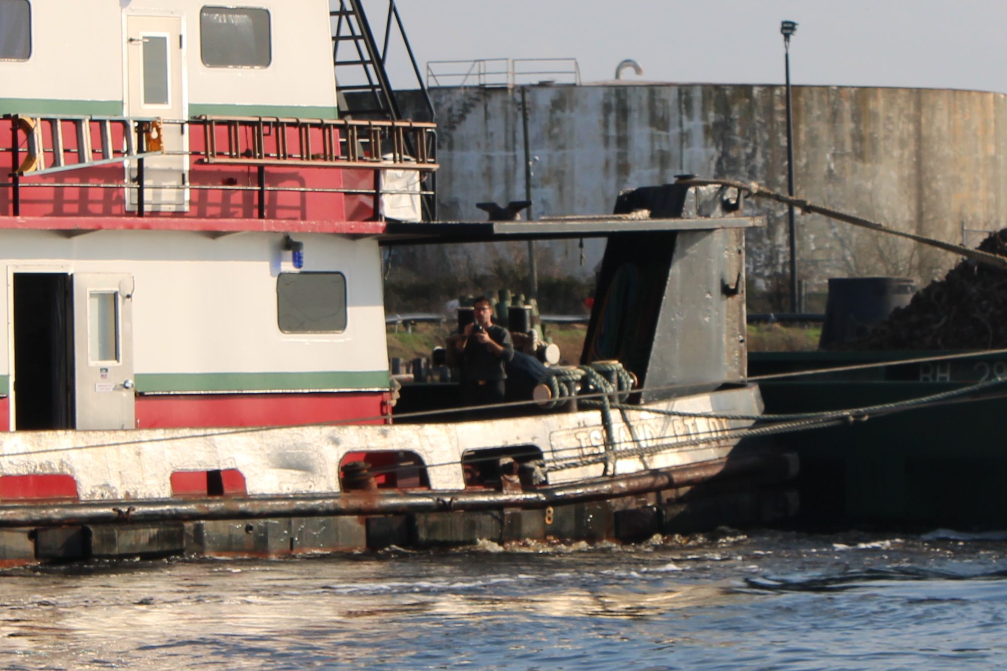 We got to the Gilmerton Bridge and the railroad bridge next to it in Norfolk having made good time. Then, we had to wait on the north side of the bridge for nearly two hours waiting for the train to come with zero communication from the bridgetender on Channel 13. The commercial traffic around us was even less pleased than Tripp, especially the captain of the tug Island Pilot. He blasted his horn at the bridgetender, when he was finally through, letting us know on the radio that