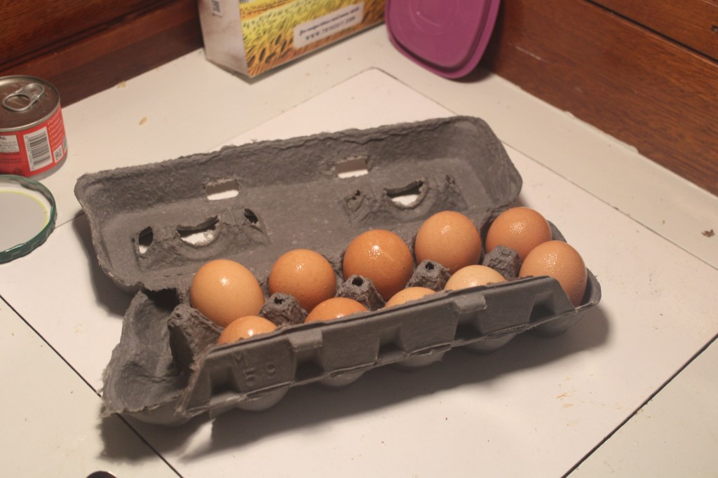 I don’t know that Tripp’s choice to dump two bags of ice on top of the eggs was the best way to go about it, but hey. What do I know.